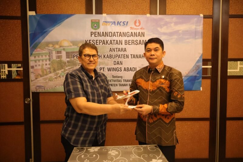 KALIMANTANVIEW.COM, TANAH BUMBU – Bupati Tanah Bumbu Andi Rudi Latif melakukan penandatanganan Nota Kesepahaman (MoU) bersama Drs. Ari Azhari, Direktur Utama (CEO) dari Super Air Jet, yang mewakili manajemen PT Wings Abadi. Acara penandatanganan berlangsung di Hotel Grand Sahid Jaya, Jakarta.