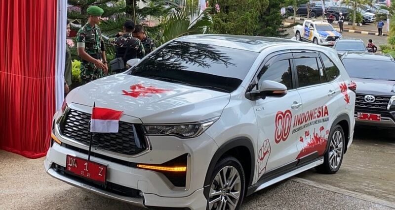 Momen menarik terjadi saat mobil sederhana jenis Toyota Zenik yang dihiasi branding merah putih dengan logo 80 tahun RI menjadi perhatian peserta upacara. Dari balik kaca jendela, tampak Bupati Tanah Bumbu, Andi Rudi Latif, turun dengan senyum hangat.