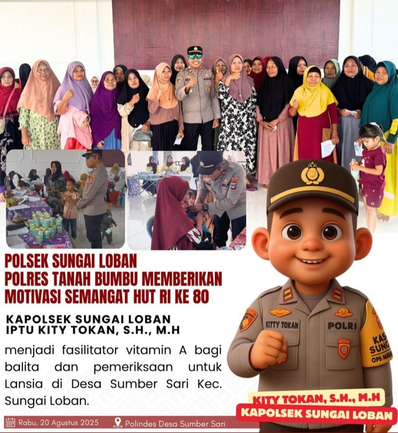 KALIMANTANVIEW.COM – Tanah Bumbu – Polsek Sungai Loban menjadi fasilitator dalam kegiatan kesehatan berupa pemberian Vitamin A untuk balita dan pemeriksaan kesehatan untuk lansia di wilayah Kecamatan Sungai Loban, Kabupaten Tanah Bumbu.