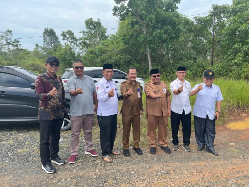 Ketua PCNU Tanah Bumbu, Muhammad Zaki Yamani, bersama beberapa pengurus langsung meninjau lokasi pembangunan sekretariat mereka yang berlokasi di Jalan Dharma Praja, Desa Sepunggur, Kecamatan Kusan Tengah, Senin (13/10/2025).