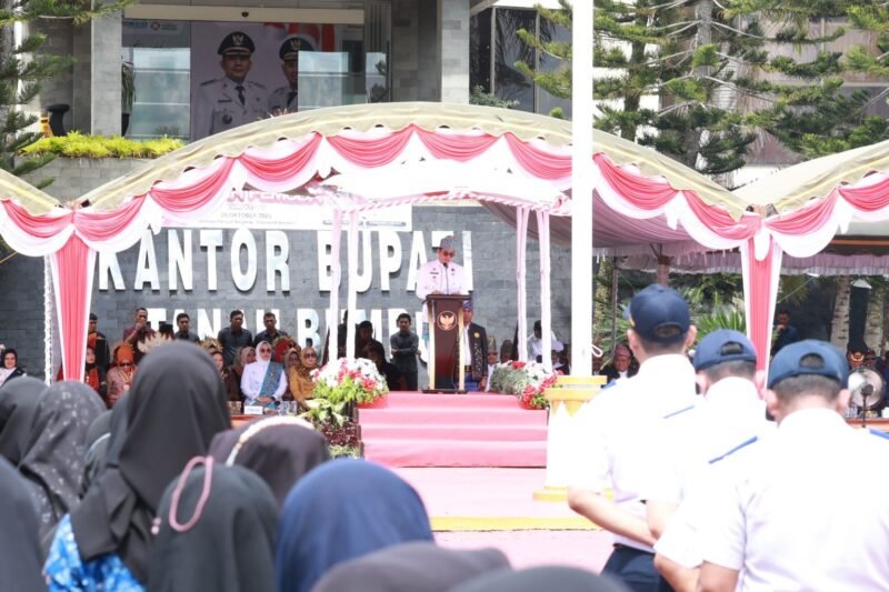 KALIMANTANVIEW.COM, TANAH BUMBU – Suasana khidmat dan penuh semangat kebangsaan tampak di halaman Kantor Bupati Tanah Bumbu pada pelaksanaan Upacara Peringatan Hari Sumpah Pemuda ke-97 Tahun 2025, Selasa (28/10/2025). Ratusan peserta mengenakan berbagai pakaian adat Nusantara, menampilkan keberagaman budaya Indonesia yang indah dalam satu semangat persatuan.